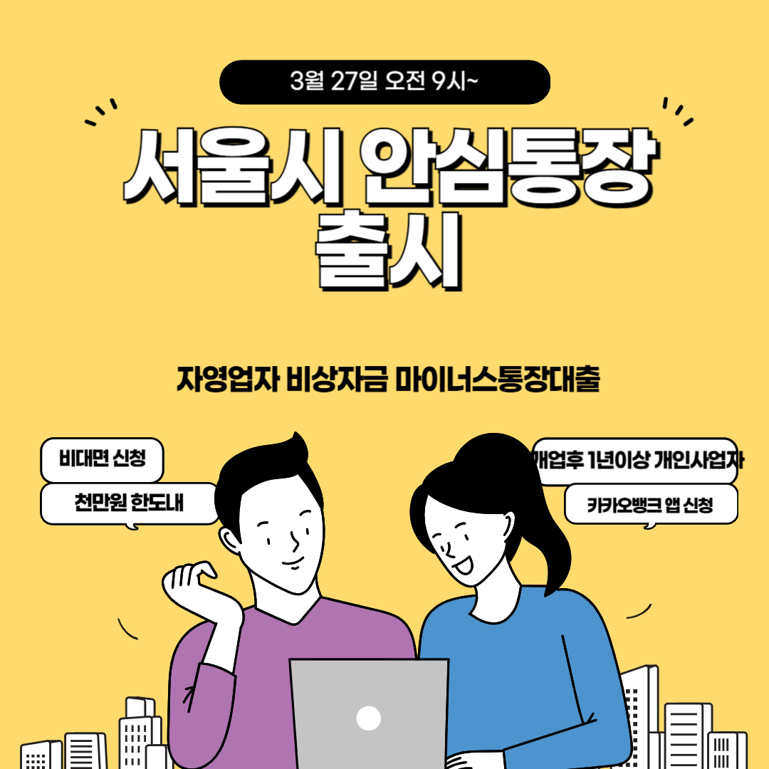 당장의 위기를 넘기고, 미래를 준비하는 현명한 선택! 서울시 자영업자 안심통장으로 지금 시작하세요.